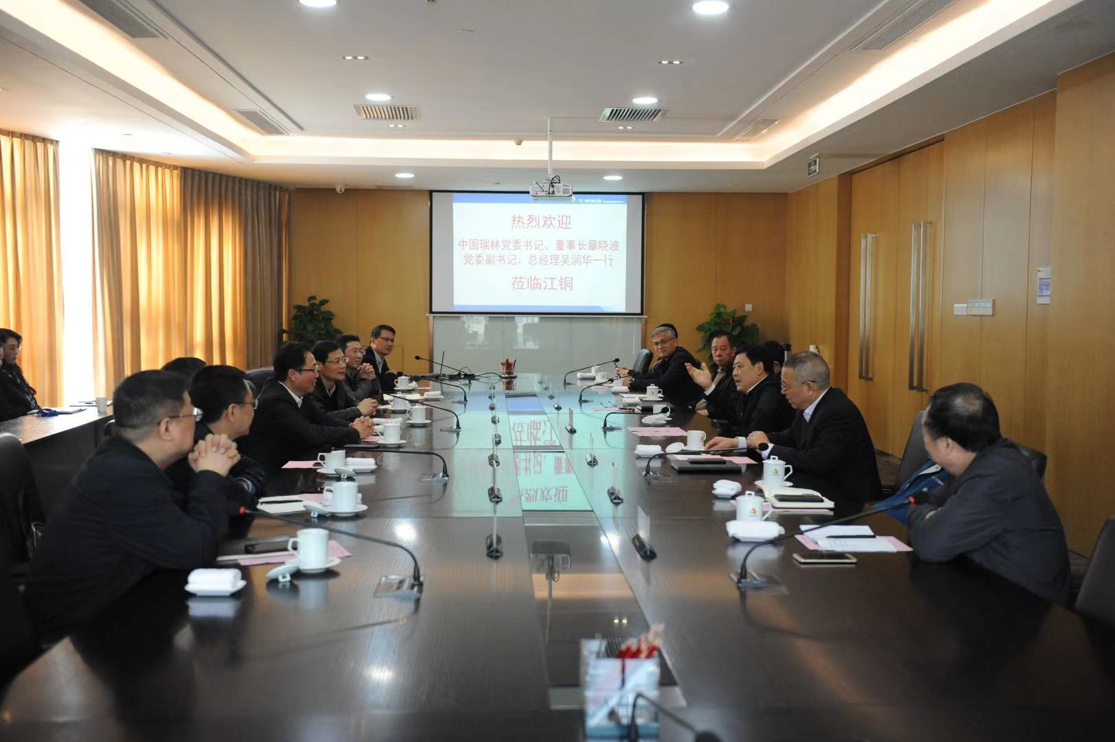 章晓波董事长介绍了中国瑞林2020年度在战略实施、改革攻坚、科技创新、人才培养、国际化发展以及“十四五”战略规划等方面的基本情况。章晓波表示江铜集团是国内最大、最现代化的铜生产和加工基地,黄金、白银、硒、碲、铼等稀贵金属和硫化工的重要生产基地,是中国铜行业的领头羊,中国瑞林与江铜集团有着长期友好的合作历史,中国瑞林始终致力于为江铜集团的发展提供专业的技术和管理服务,中国瑞林的健康快速发展离不开江铜集团的支持和帮助。在新的发展背景下,希望双方在国内外更宽领域更深层次的合作,提升企业规模和核心竞争力,在资本及业务、建设项目、科研、人才培养等方面开展更广泛、深入的合作,携手发展、实现共赢。